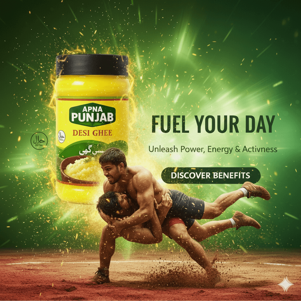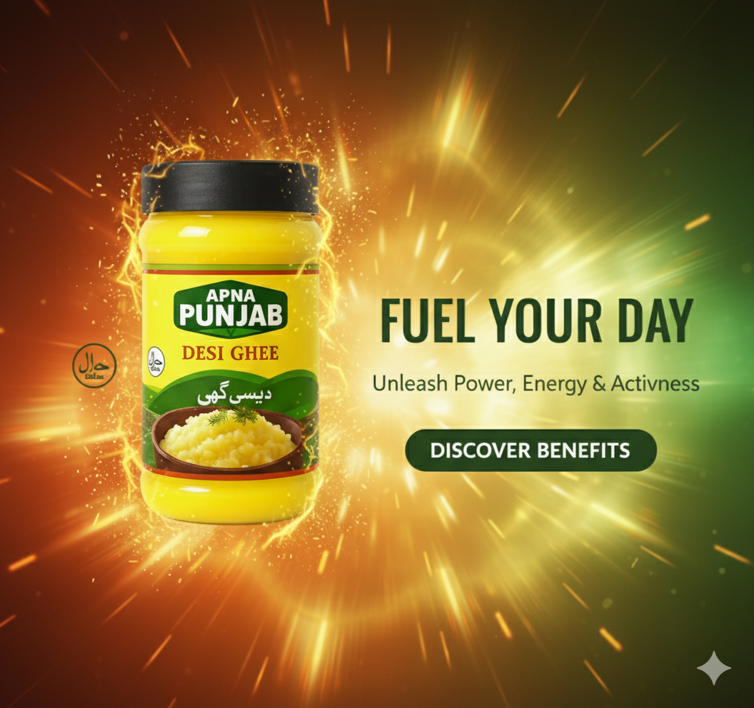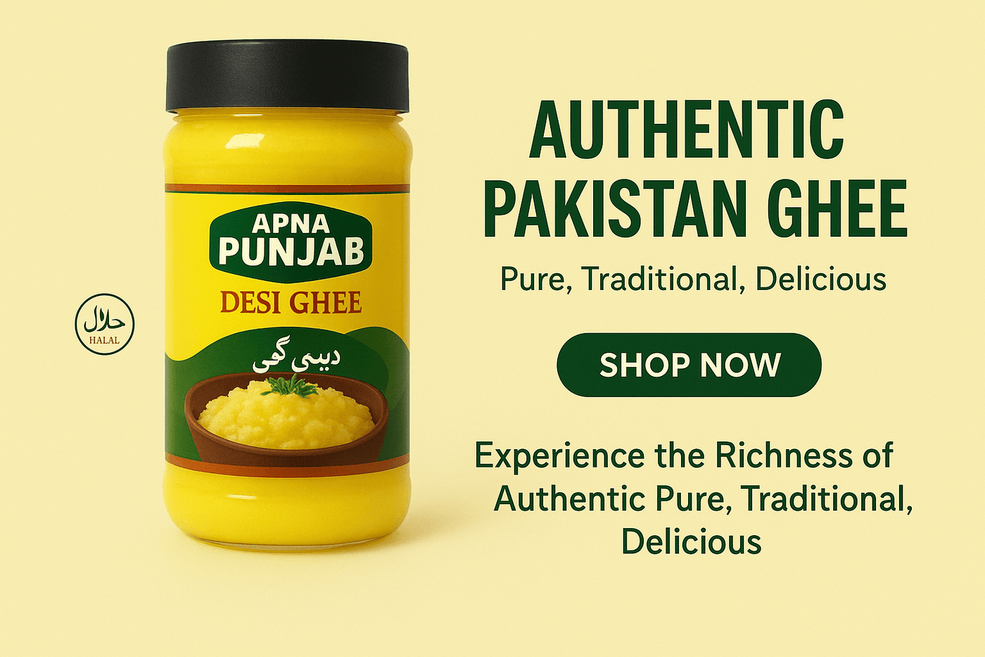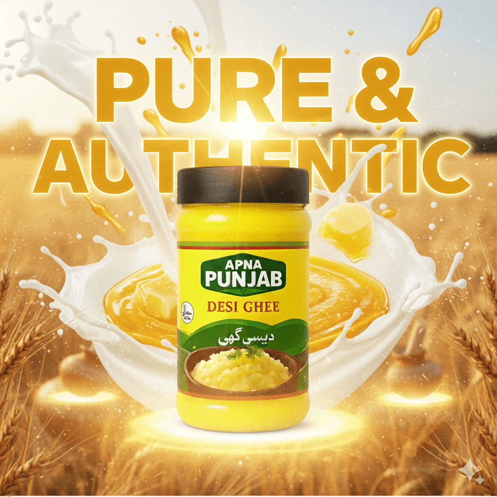 Elevate your cooking with our premium Apna Punjab Desi Ghee, now proudly presented as Authentic Pakistan Ghee.